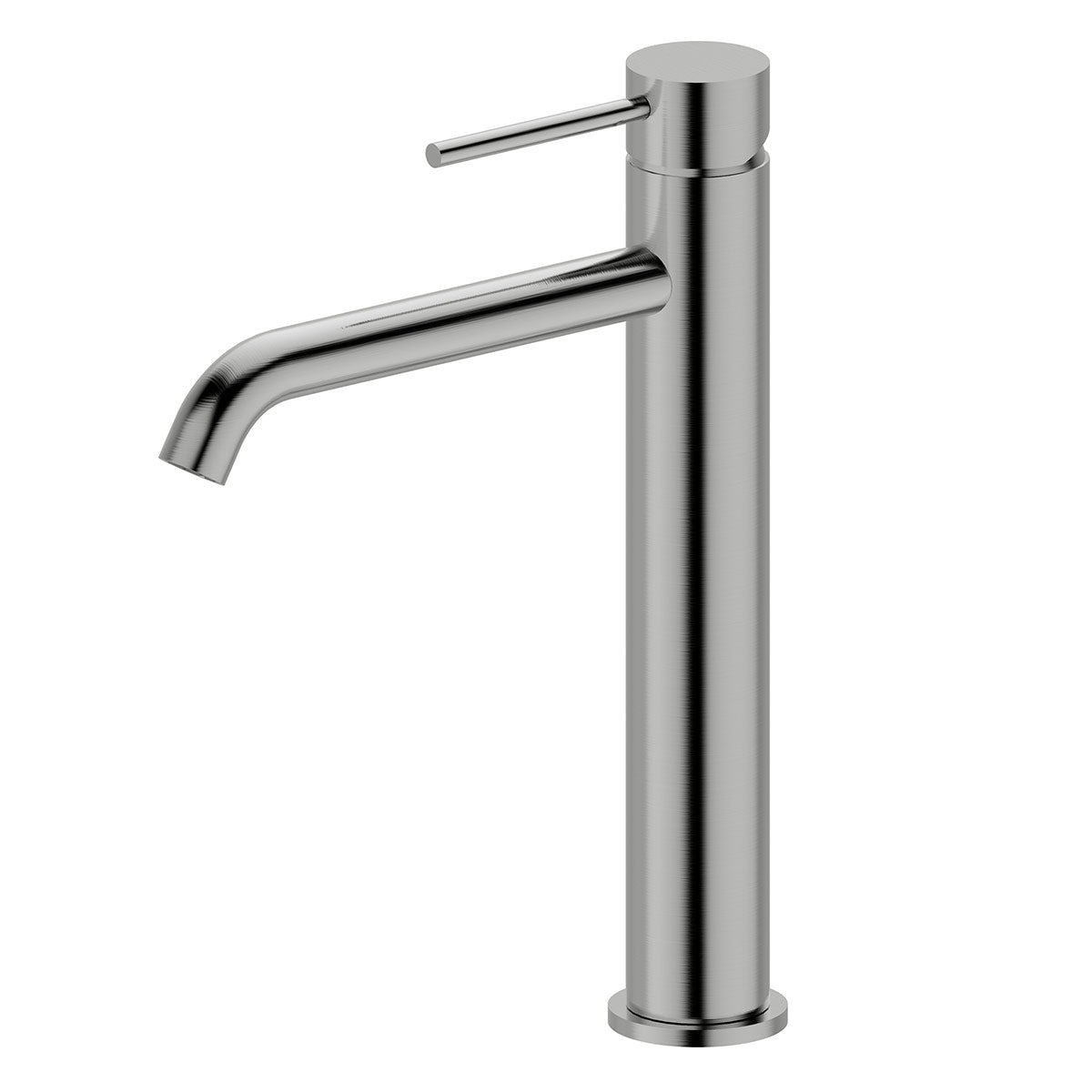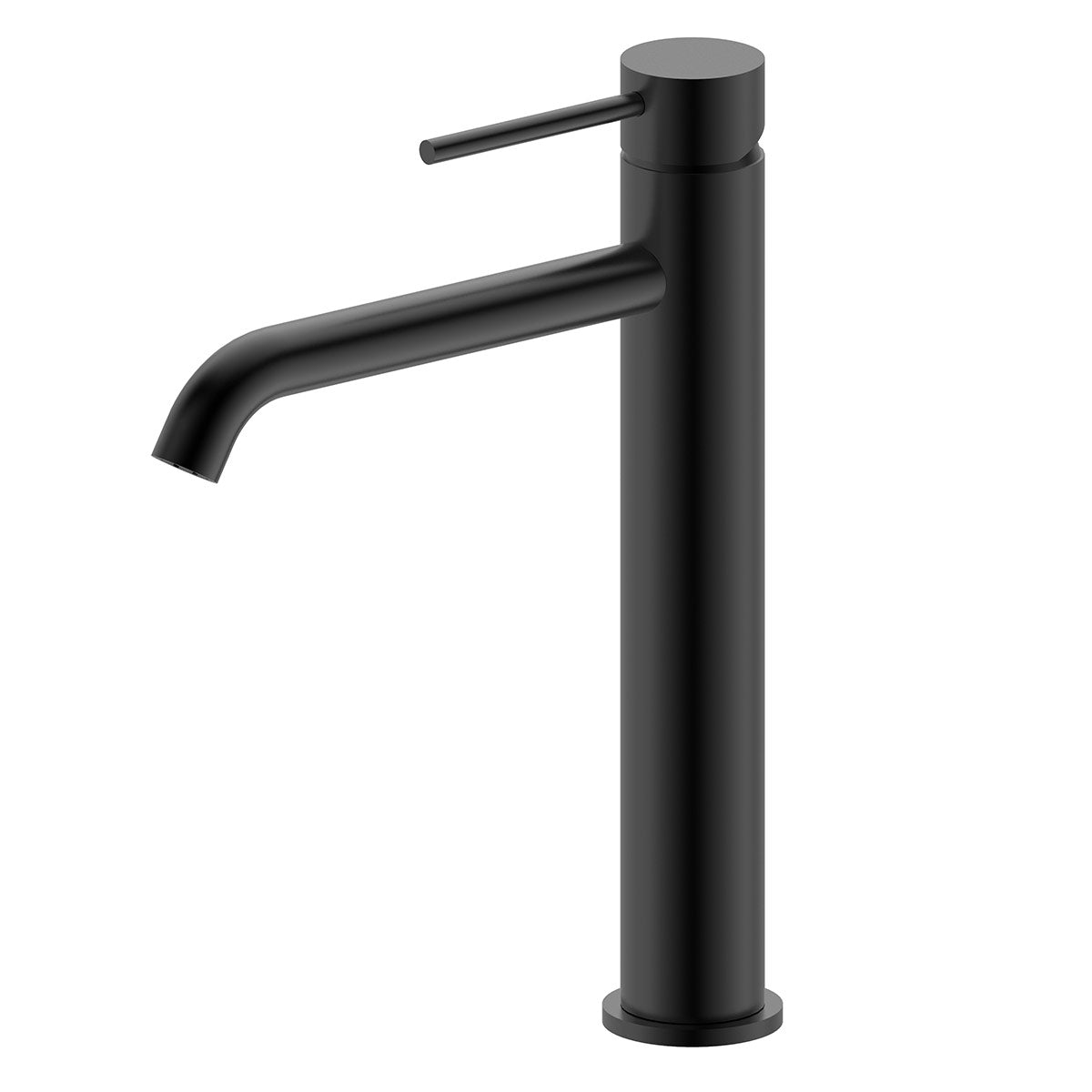 Tall single-control bathroom faucet for vessel sinks; single hole or 4" centerset installation (deck plate hole cover and drain sold separately); all metal construction, ceramic disc valving, supply hoses included; easy to operate and install; meets or exceeds all plumbing codes and standards, limited lifetime warranty.