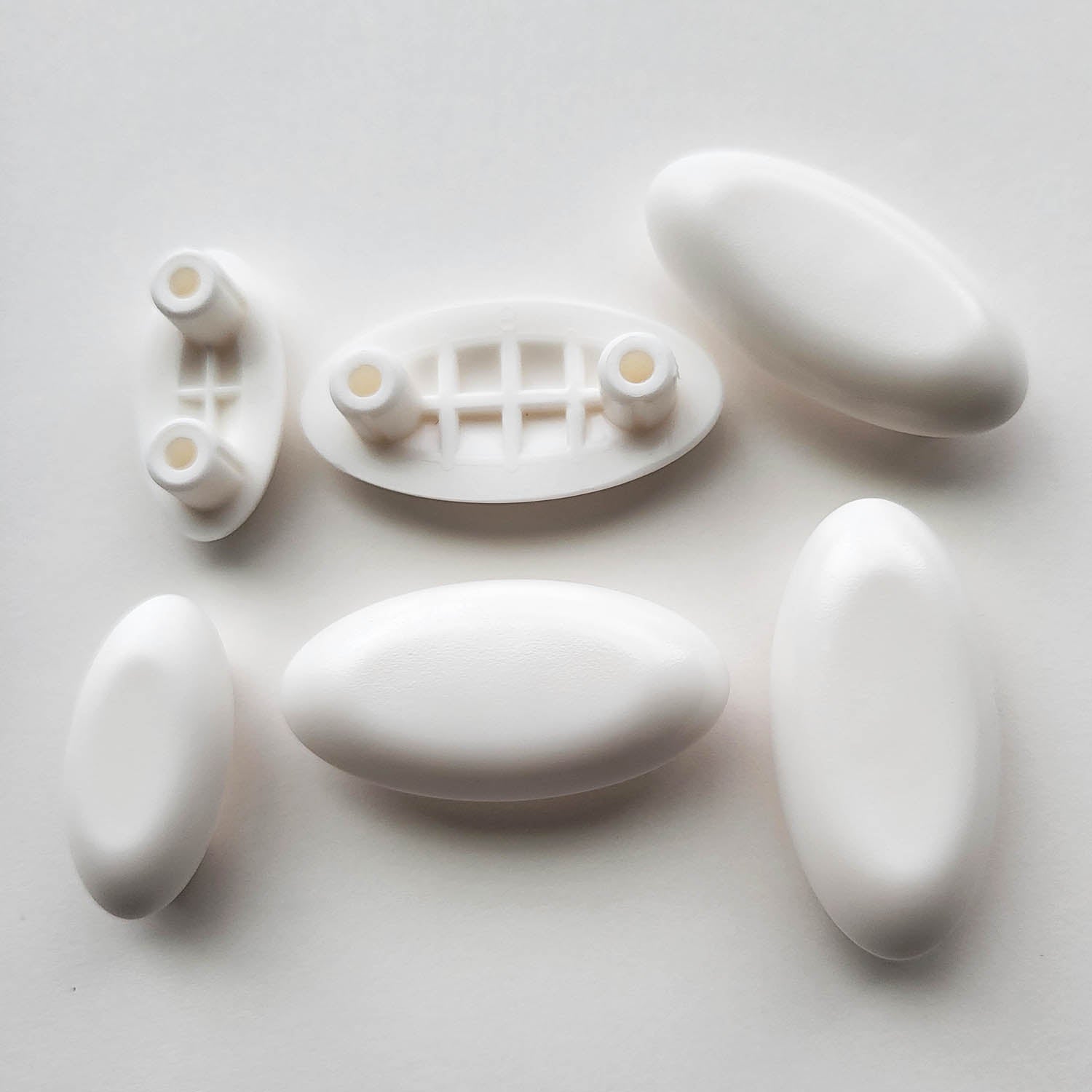 Replacement bumpers for MasterSuite toilet seats (BR237 and BR283). The original grey bumpers were made of soft rubber and may deteriorate over time. These replacement bumpers are much stronger, easy to install and long-lasting.